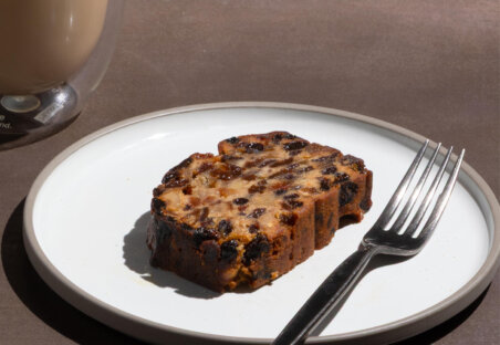 The moist batter is infused with a hint of liqueur, allowing the sweetness and gentle acidity of the fruits to harmonize beautif”lly with the nutty notes.